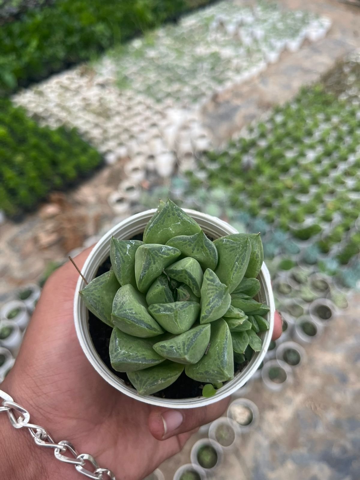 • Growth Habit: Cathedral Window Haworthia forms small, compact rosettes that typically grow to about 3-4 inches (7-10 cm) in diameter. The plant has a slow growth rate, making it an excellent choice for small spaces, containers, or as part of a succulent arrangement.