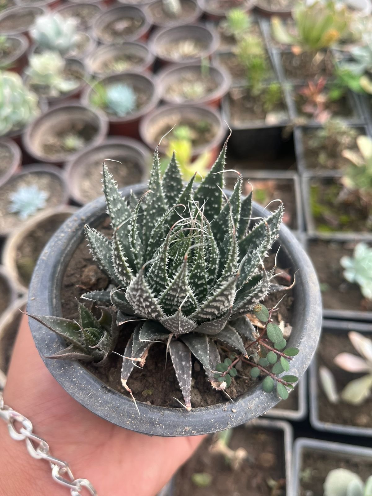 - Shape: The rosettes are tight and symmetrical, with leaves that curve slightly inward. The plant produces offsets or “pups” around the base, which can form clusters over time.
