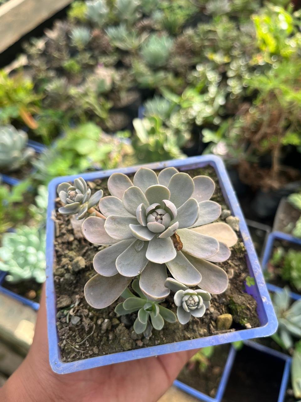 - Growth Habit: These plants are usually compact and spread slowly by producing offsets (pups) around the main rosette. Some species of Orostachys have leaves that become more pointed and elongated as they mature, giving the plant a more spiky appearance.